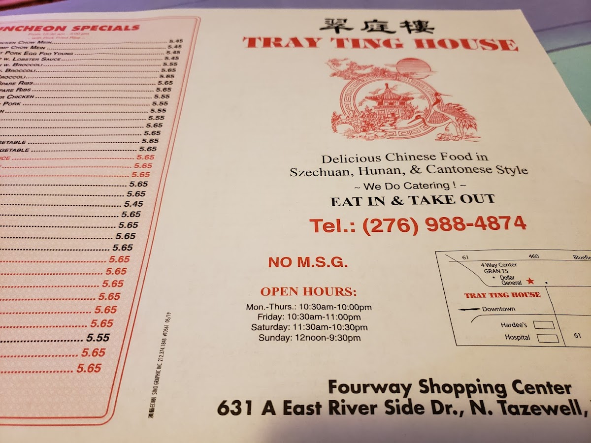 Welcome to Tray Ting House, a charming gem nestled in the heart of North Tazewell, Virginia. Located at 631 E Riverside Dr, this cozy and welcoming eatery is the embodiment of a family-run establishment, where the warmth of hospitality meets the rich flavors of traditional Chinese cuisine. If you're in the area, don’t hesitate to reach out at +1 276-988-4874 for any inquiries or takeout orders!
